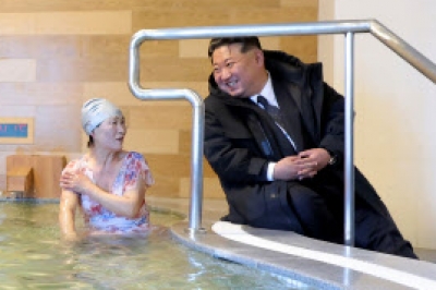 北 온포근로자휴양소 시설 돌아보는 김정은