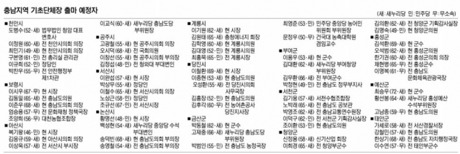 [6·4 지방선거 누가 뛰나] 충남 기초자치단체장