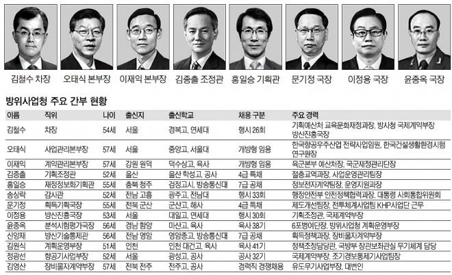 김원식(육군 준장) 계획운영부장은 국방부 장관보좌관실에서 무기체계를 담당했던 엘리트 군인이다. 30년간의 군 경험을 살려 정책조정담당관으로 여러 이해관계의 조정을 맡는 등 유망주로 꼽힌다. 공군의 ‘에이스’(최고 인재)로 불리는 정광선(준장) 항공기사업부장도 차기전투기(FX)사업 등을 담당한 주역으로 합리적 일 처리와 외유내강형 스타일로 주목받고 있다.