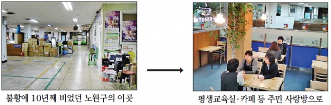 의류 제작과 뜨개질, 천연화장품, 토털공예, 도자기, 전통 연 만들기, 바리스타 창업 과정 등 강좌가 마련된다. 인근에 커피 판매점 등이 없는 것을 고려해 장미카페도 문을 열었다. 노원평생교육원 바리스타 과정 수료생들의 창업체험장으로 3개월씩 돌아가며 실습도 한다. 떡방을 운영하는 강승주씨도 “죽었던 상가에 사람들이 모이게 됐으니 아무래도 장사에 도움이 될 것”이라고 기대했다.