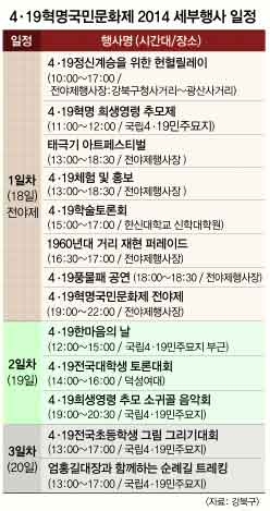 오는 19일 오후 2시 덕성여대에서 마련되는 ‘4·19전국대학생토론대회’도 눈길을 끈다. 올해 처음이다. ‘청년, 민주주의를 말하다’라는 이름 아래 방송인 서경석의 진행으로 예선과 본선을 통과한 서울대, 연세대, 원광대 학생들이 토론 배틀을 벌인다. 김호기(연세대), 장훈(중앙대), 이기호(한신대), 박인휘(이화여대), 김두환(덕성여대) 심사위원이 지켜보는 가운데 진행된다. 박 구청장은 “뜻밖에 토론 수준이나 깊이가 대단하다는 얘기를 들었다”면서 “배틀 과정을 전부 녹화해 영상자료를 각 대학에 보급할 것”이라고 말했다.