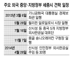 외국 중앙 및 지방정부의 세종시 방문이 본격화된 것은 지난해부터다. 지난해 3월 아프리카 기니공화국 대통령실 경제보좌관 등을 시작으로 5월에 필리핀 일로일로시 시장 일행이 세종시를 찾았다. 7월 산시성 5개 지방정부 외사판공실 대표단 10명에 이어 11월 몽골 송니오레어칸 구청장 등이 시를 방문했다.