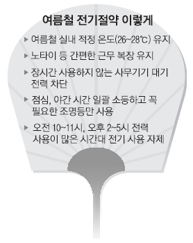 한낮에 30도가 넘는 폭염이 일찌감치 시작되면서 정부청사에서 일하는 공무원들은 지난해보다 더 혹독한 ‘여름나기’를 걱정하고 있다. 정부청사는 9일 에너지 절약 캠페인을 시작으로 본격적인 여름나기에 착수했다.