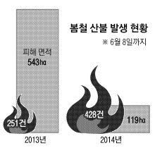 산불 조사 역량도 강화돼야 한다. 원인 불명의 산불인 입산자 실화가 봄철 산불의 36%를 차지하고 있지만 검거율은 5%에 불과하다. 김현수 산림청 국장은 “국민의 참여와 대형 산불 특별대책기간 및 청명·한식 등의 위험 시기에 맞춘 대응책이 효과가 있었다”면서 “산불 원인을 분석해 실효성 있는 예방책을 마련하겠다”고 말했다.