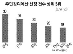 시민들이 선정한 내년 주민참여예산 352건 중 광진·관악·성북구에서 가장 많은 사업을 끌어 왔다. 안전 문제를 다룬 예산안이 많이 선택됐고 번뜩이는 아이디어 예산안도 좋은 점수를 받았다.