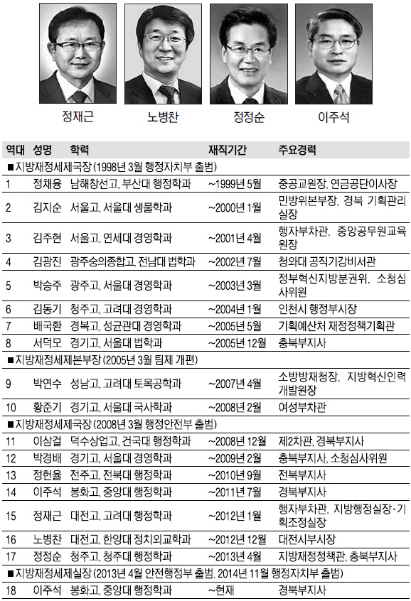 현재 충북도 부지사로 일하고 있는 정정순 전 지방재정세제국장은 1993년 정태수 내무부 지방재정국장 이후 20년 만에 나온 고졸, 비고시 출신 국장으로 화제를 모은 바 있다.