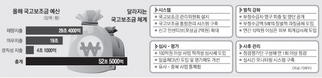 기획재정부 2차관이 위원장을 맡고 각 부처 1급 간부와 보조금 전문가 등 20여명이 참여하는 ‘컨트롤타워’ 성격의 국고보조금관리위원회를 신설한다. 또 신고포상금 한도도 기존 1억원에서 2억원으로 올렸다.