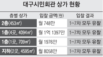 문제는 상가가 2년 넘도록 임대가 되지 않는 데 있다. 상가는 시민회관 2층에 1곳, 1층 5곳, 지하 2곳 등 모두 8곳 9851㎡이며 2013년 11월 25일부터 임대 입찰에 들어갔다. 입찰은 지난해 2월 4일까지 7차례에 걸쳐 진행됐으나 단 한 곳도 응찰자가 없었다. 임대료가 주변 상가보다 2~3배 정도 높은 데다 관리비도 3.3㎡당 2만 1000원으로 비쌌기 때문이다. 이에 따라 시는 지난해 캠코에 상가 임대수익금 보전용으로 25억원을 지급했다. 앞으로 상가 임대가 되지 않으면 캠코에 매년 같은 금액을 지급해야 한다.
