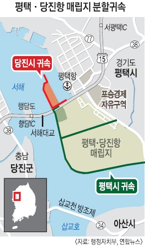 이는 행정자치부 산하 중앙분쟁조정위가 지난 13일 당진시가 자치권을 행사하던 서부두와 외곽호안 등 96만 2337㎡ 중 제방 안쪽 28만 2747㎡는 당진시, 나머지 67만 9590㎡는 경기 평택시 관할로 결정했기 때문이다. 2004년 헌재 판결로 해상경계상 당진·아산에 속한 평택당진항 매립지는 해당 지역 토지로 등록됐었다. 하지만 2009년 지방자치법이 ‘공유수면 매립지 관할은 행자부 장관이 결정한다’고 바뀌었다. 평택시는 당진·아산에 속한 21필지 중 11필지(96만 2337㎡)가 법 개정 이후 등록된 것을 알고 행자부에 관할 조정을 신청했다.