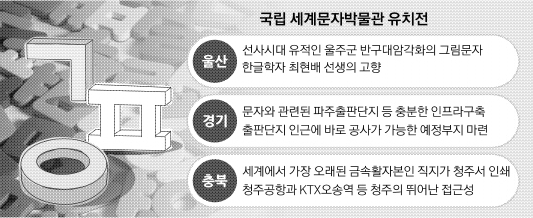 정부가 구상 중인 국립세계문자박물관을 잡기 위한 지방자치단체 간의 유치경쟁이 뜨거워지고 있다.