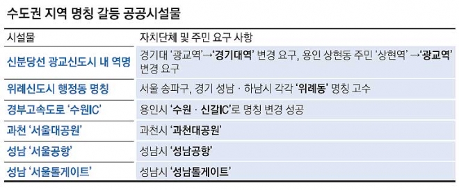 수도권 지역에서 공공시설물 명칭을 둘러싼 갈등이 잇따르고 있다.