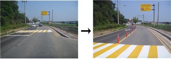 국민안전처는 파주시 도로관리사업소로 연락을 취했다. 곧장 현장점검이 이뤄졌다. 주로 외지에서 오가는 자동차들이 씽씽 내달리고 있었다. 중앙선 침범이 숱했다. 따라서 덩달아 교통사고도 잦은 곳이다. 파주시 관계자는 “50m밖에 되지 않는 짧은 구간이지만 커브 길인 데다 어린이 보호구역이어서 얼른 민원을 받아들였다”고 밝혔다. 파주시 도로관리사업소는 작업할 근로자를 물색한 끝에 14일 설치를 마무리 지었다. 특히 눈이 자주 내리는 겨울철을 눈앞에 둬 재빨리 처리해야만 했다.