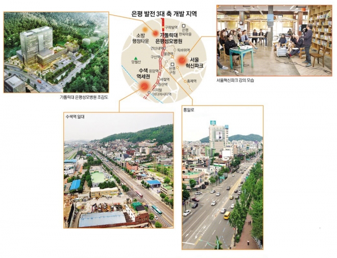 은평성모병원에서 통일로를 따라 남쪽으로 내려오면 미래 성장동력의 핵심 기지라고 할 수 있는 서울혁신파크가 있다. 혁신기업·단체·연구기관 등 다양한 혁신주체들이 협업·교류하면서 무한한 아이디어와 인재들을 키워내는 창조경제단지다. 서울시가 주도적으로 추진하는 이 사업에 올해 127억원을 포함해 총 1784억 7900만원을 투입할 예정이다. 시와 구는 청년·벤처기업에 사회투자기금을 지원하고 공동 전시판매장을 운영하는 등 각종 지원을 하면서 ‘혁신의 테스트 베드’로 삼으려고 한다.