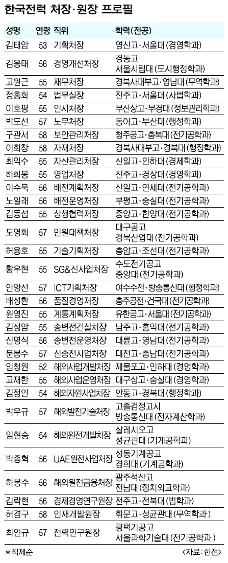 [공기업 사람들 <2>한국전력공사(하)] 처장 29명 대부분 30년간 일한 정통맨들