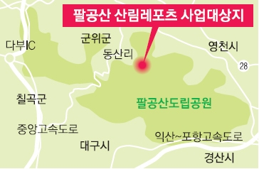 대도시 근교인 팔공산에 산림레포츠와 힐링을 동시에 즐길 수 있는 대규모 위락단지가 조성된다.