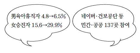 여성가족부가 운영하는 여성인재 활용과 양성평등 실천 태스크포스(TF)가 남성 육아휴직자 증가 등 일·가정 양립 문화 확산에 성과를 거두고 있는 것으로 나타났다. TF에는 네이버·삼성전자 등 민간기업 55개, 국민건강보험공단 등 공공기관 23개, 민간단체, 연구기관, 정부 부처 등 모두 137개의 기업·기관이 참여하고 있다.