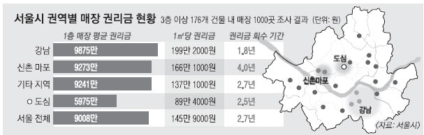 강남 9875만원·신촌 9273만원… 권리금 회수 최대 4년 걸려