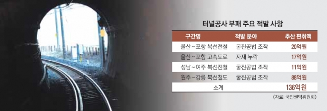 ‘비리 온상’ 터널 공사 올해만 136억 빼돌렸다