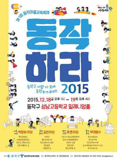 동작구가 오는 18·19일에 성남고등학교 밀레니엄홀에서 동작마을교육축제인 ‘동작하라 2015(포스터)’를 연다고 14일 밝혔다.