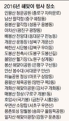 1월 1일 새해에 서울에서 해맞이를 하려면 어디로 가야 할까. 강원도 설악산이나 남해 암자로 가면 좋겠지만, 떠나지 못하는 이들을 위해 서울시가 도심과 인근 일출 명소를 28일 소개했다.