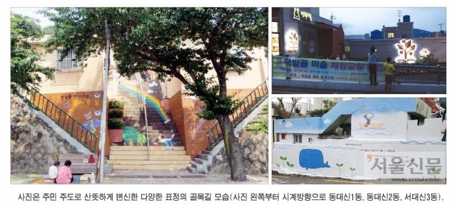 지저분한 회색빛 콘크리트 일색이던 부산 서구의 골목길이 주민들에 의해 다양한 표정을 담은 아름답고 안전한 골목길로 거듭나고 있다.