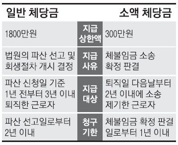 A)체당금은 구상권을 청구하는 것을 의미합니다. 도산기업에서 퇴직한 임금체불 근로자만 해당되고 최대 1800만원까지 지원받을 수 있죠. 하지만 지난해 7월부터 시행된 소액 체당금 제도는 기업이 도산하지 않아도 지급할 수 있습니다. 체불임금 소송에서 승소해 확정판결을 받은 근로자는 최대 300만원까지 지원받을 수 있습니다.