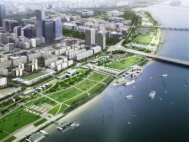 4대 핵심사업은 수상시설인 통합선착장과 피어데크, 육상시설인 여의테라스와 복합문화시설 건립 등으로 결정됐다. 이들 시설은 여의도한강공원 부지 3만 5000㎡에 예산 1933억원을 들여 건설된다. 사업비는 국비 596억원, 시비 598억원, 민자유치 739억원이 투입될 예정이다.