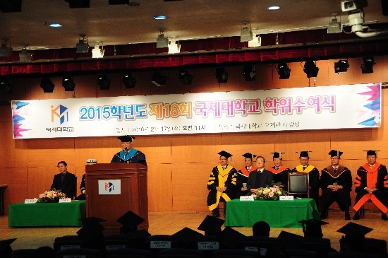 국제대학교(총장 장기원) 2015학년도 학위수여식(18회, 사진)이 17일 대강당에서 열렸다.