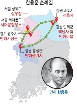[현장행정] 흩어졌던 만해의 유산, 700㎞로 잇는다