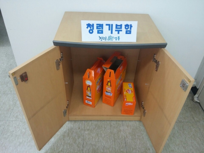 총 3가지 신규 제도 중 우선 눈에 띄는 것은 ‘청렴 기부함’이다. 사례처럼 감사의 표시로 제공된 선물을 받았으면 감사담당관실에 설치된 청렴 기부함에 갖다 넣도록 하는 것이다. 들어온 물품은 저소득층을 돕는 지역단체 ‘성동 희망푸드 마켓’에 제공자 이름으로 기부하게 된다.