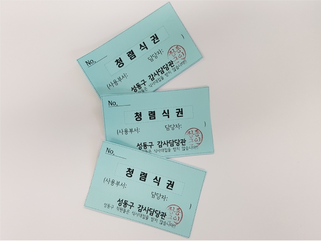 ‘청렴 식권’도 도입했다. 공사·용역 등 계약업체와의 회의, 민원 상담 과정에서 같이 식사를 하게 되면 감사담당관실에서 배부한 청렴 식권으로 구내식당을 활용하는 것이다. 식사비의 대가성 논란을 막을 수 있다. 정원오 구청장은 “사후처벌보다 사전 예방으로 청렴을 지키는 것이 효과적”이라면서 적극으로 제도 이용을 요청했다.