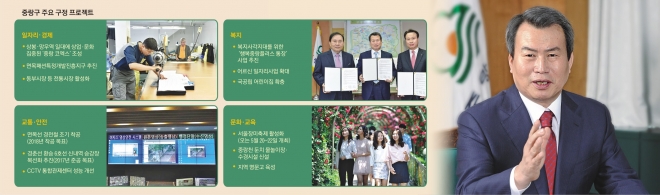 가난한데도 충분한 복지 혜택을 받지 못하는 사각지대 빈곤층을 위한 중랑형 복지정책도 계속 추진한다. 사회복지학 박사 학위가 있는 나 구청장이 미는 대표 정책은 ‘행복중랑플러스 통장’ 사업이다. 중위소득 80%(4인 가족 기준 351만원) 이하인 저소득 가구가 3년 동안 매달 10만원씩 통장에 저금하면 구가 민간후원금을 재원 삼아 매달 10만원씩 추가로 입금해 주는 사업이다. 나 구청장은 “예산이 한정된 탓에 공공재정으로는 빈곤층을 충분히 돕기 어려웠다”면서 “지역민과 기업 기관 등을 상대로 벌써 1억 6000여만원을 모았는데 연말까지 3억 5000만원을 모아 구민들을 도울 것”이라고 말했다.