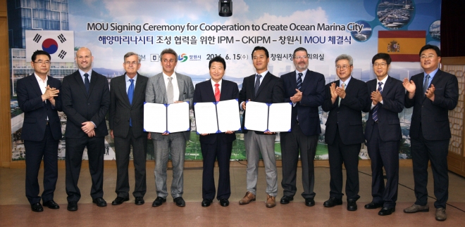 창원시와 스페인 IPM사, IPM사의 한국 자회사인 CKIPM사는 15일 창원시청에서 해양 마리나시티 조성사업 협약을 체결했다.