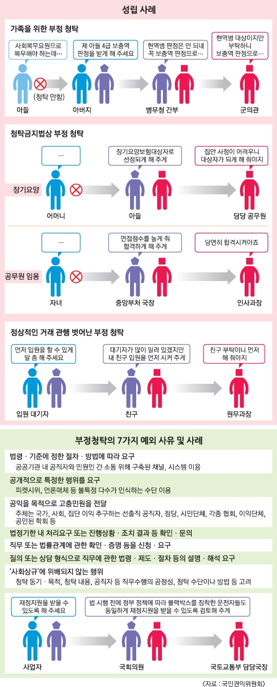 [권익위 해설서로 본 김영란법] “아들 현역 빼줘” “친구 먼저 입원시켜줘” 민간인 청탁도 처벌