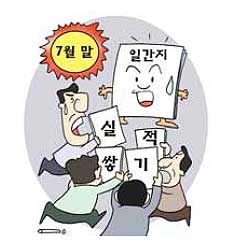 매월 하는 평가인데 유독 7월 말에 기고문이 봇물 터지듯 쏟아지는 이유는 무엇일까요. 공무원들은 한마디로 “쓸 거리가 많기 때문”이라고 답합니다. 지난 6월 말 ‘하반기 경제정책방향’을 시작으로 이달 초에는 ‘서비스 경제 발전전략’, ‘수출 및 투자활성화 대책’, ‘추가경정예산안’까지 부처 합동의 굵직한 정책들이 잇달아 발표됐습니다. 산업, 복지, 고용, 교육, 문화, 환경 등 다양한 아이디어를 모은 종합정책이기 때문에 부처마다 홍보할 거리가 넘칩니다. 한 사무관은 “새로운 정책이 나오면 기고문 쓰기가 쉽지만, 일 없고 조용한 때 기고 당번이 돌아오면 머리를 쥐어짜느라 생고생”이라고 푸념합니다.