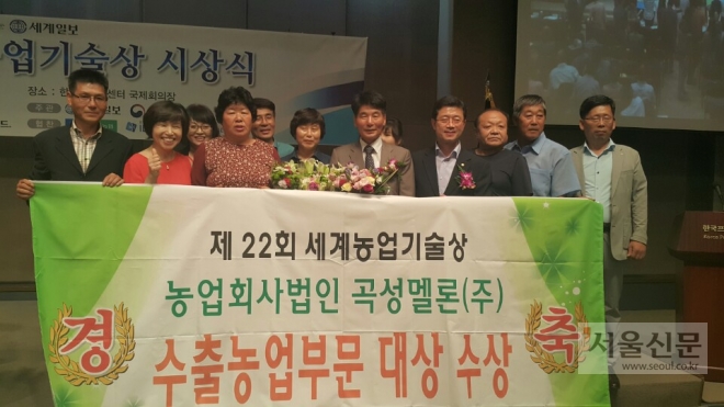 16일 한국프레스센터에서 열린 ‘제22회 세계농업기술상’ 시상식에서 곡성멜론㈜이 ‘수출농업부문 대상’을 수상했다. 박철한 곡성군농업기술센터 채소화훼팀장은 유공 공무원상을 받았다.
