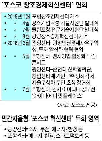 지난해 8월 문을 연 광양센터는 소재·부품, 에너지·환경 분야를 중심으로 아이디어 창업 지원 허브를 구축하고, 강소기업을 육성하며 지역 일자리를 창출하고, 대·중소기업 동반성장 프로그램과 연계한 우수 벤처창업 지원을 추진하고 있다. 광양센터는 지난해 1월 포스코가 설립한 포항 창조경제혁신센터와 마찬가지로 민간자율형 센터이다.
