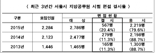 “서울 거주자 합격비율 30% 안돼... 거주제한 없어 서울 공시생에 역차별”