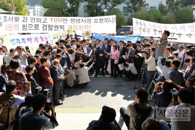 이 시장은 출석에 앞서 이날 오전 10시쯤 수원지검 성남지청 앞에서 “선거관리위원회도 문제 삼지 않은 트윗글이 선거법을 위반했다”며 “뒤늦게 검찰이 수사하는 것은 정치탄압”이라고 주장했다. 그는 “저의 트윗글이 대통령과 안기부(국가정보원) 심지어 ‘일베’의 명예를 훼손했다는 사소하고 터무니없는 고발을 이유로 검찰이 소환 수사라는 강수를 둬 흠집을 내려 하고 있다. 정치적 탄압을 목적으로 민선 자치단체장을 권력의 입맛대로 소환한다면 대한민국은 정의가 없다”고 강조했다. 현 정부를 ‘독재정권’이라고 4차례나 강조했다.