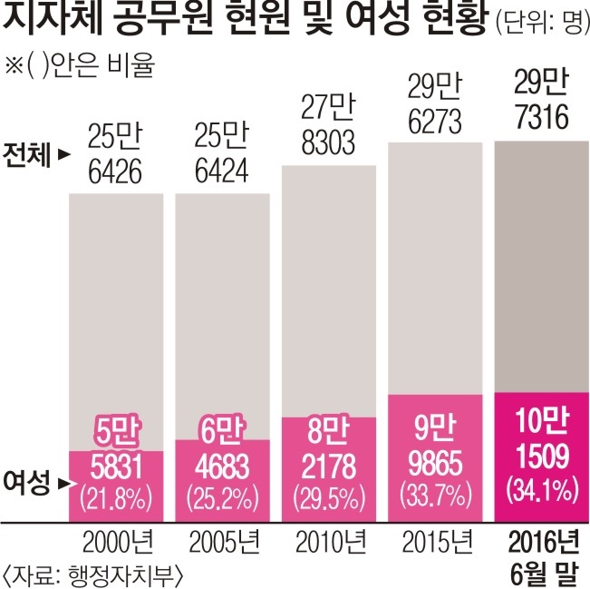 지방공무원 3명 중 1명 여성 ‘10만명 시대’