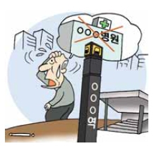 “어, 지하철 안내방송을 듣고 내렸는데 병원이 없네.”