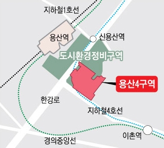 용산4구역은 2020년 6월까지 명품 주거·업무 복합 공간으로 탈바꿈한다. 우선 최대 43층 높이 주상복합아파트 4개동(1140가구)이 들어서고 업무시설 1개동(34층)과 공공시설(5층) 등이 세워진다. 또 광화문광장(1만 8840㎡)만 한 넓이의 ‘용산파크웨이’ 공원도 들어선다. 예상 공사비는 8000억원이다.