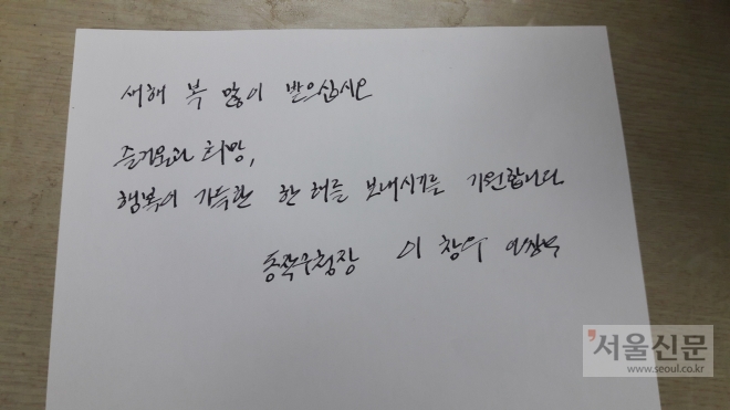 성장현 용산구청장도 리더로서 열정적이고 외향적이며 표현하기를 좋아하는 성향이 글씨체에 드러난다.