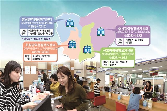 경기 의정부시가 시 전역을 흥선권역, 호원권역, 신곡권역, 송산권역 등 4곳으로 나누고 각 권역에 일종의 ‘미니 구청’격인 ‘행정복지센터’를 설치완료했다.