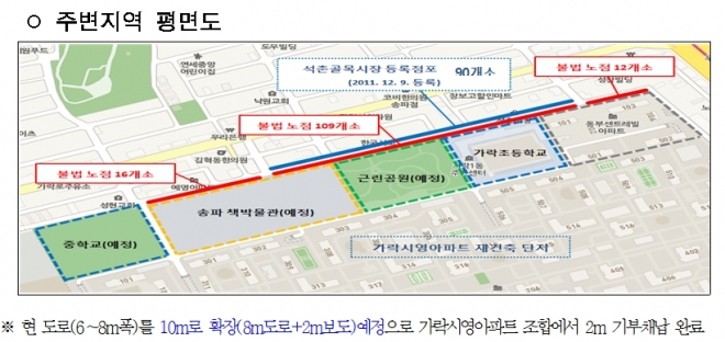 이러한 서울시의 입장과 서울시의회의 노력에도 불구하고 송파구청은 석촌시장 노점상가를 철거하겠다는 입장이다.