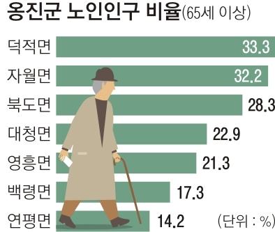 21일 옹진군에 따르면 65세 이상 노인 인구비율은 22.3%로 초고령사회(65세 이상 인구비율 20% 이상)를 넘어섰다. 인천지역 평균 노인 인구비율 11.1%보다 두 배나 높다.
