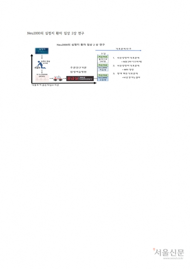 Neu2000은 지난해 6월 뇌졸중 환자를 대상으로 한 임상 2상 연구를 식약처로부터 승인받고 국내외에서 진행 중이며 이번에 심정지 환자에게도 효과가 있는지 연구를 시작하게 됐다.