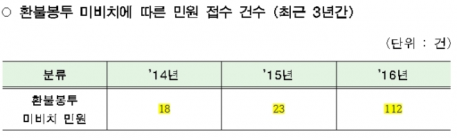 환불봉투 미비치에 따른 민원이 증가하고 있는 실정임에도 불구하고 한국스마트카드는 편의점 환불봉투에 비치에 관한 근거 규정이 없다는 이유로 소비자들의 목소리를 외면하고 있는 실정이다.