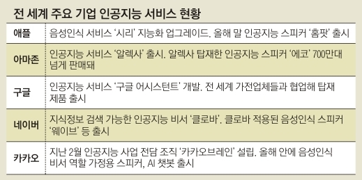 네이버는 AI ‘클로바’를 통해 정보 검색과 음악 추천, 영어회화 등에 활용할 수 있다고 설명했다. 신생기업 코노랩스도 일정관리 애플리케이션(앱) ‘코노’가 인간의 일상 대화를 이해해 회의 소집이나 출장 일정 공지 등 비서 역할을 수행할 수 있다고 덧붙였다.