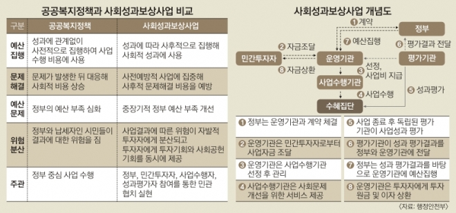 행안부는 이 사업의 활성화를 위해 ‘사회성과보상사업 아이디어 경진대회’를 열 계획이다. 다음달까지 권역별로 워크숍을 하고 12월 초 아이디어를 공모한다. 심사를 거쳐 12월 말 우수 아이디어를 10건 내외로 발표할 예정이다. 우수 아이디어를 낸 지자체에는 내년 시범사업 시 가산점을 부여하는 방안을 검토 중이다. 심보균 행안부 차관은 “민간의 참여로 지역사회 문제를 해결하고 지역경제 활성화를 유도할 수 있도록 SIB 사업의 확산을 적극 지원하겠다”고 밝혔다.